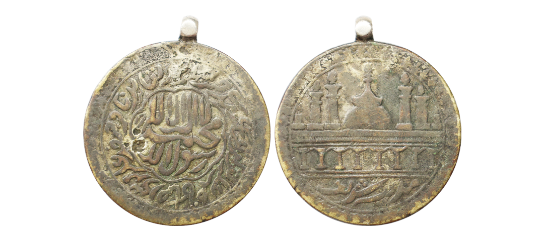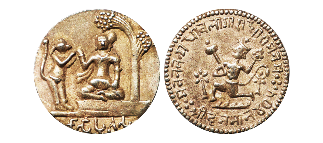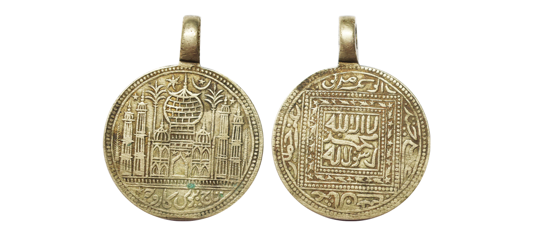 Gold Token, 11.05 gms, Imitating Jahangir Gold Portrait Mohur, Obv. Jahangir seated cross-legged on throne nimbate facing left with goblet in right hand, legends around, Rev. lion to right legends around date below, TOKEN, extremely fine.