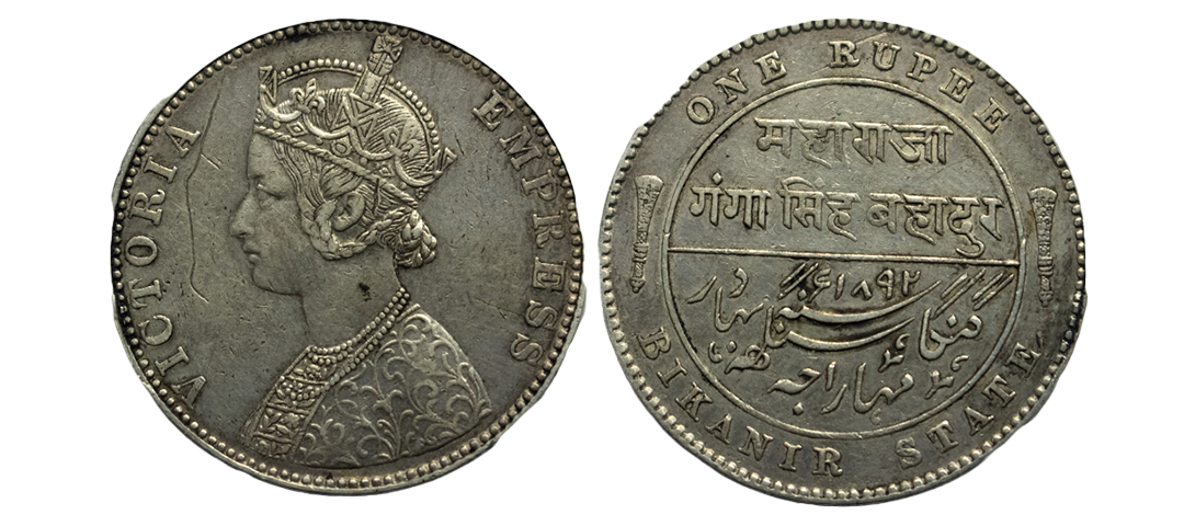 Baroda, Sayaji Rao III Gaikwad(AH 1292-1357 / 1875-1938 AD), Silver 4 Anna (1/4 Rupee), 2.81Grms, Portrait Type, VS 1949, King bust facing to right on obv., Scimitar with date on rev. (KM # Y34). Extremely Fine.
