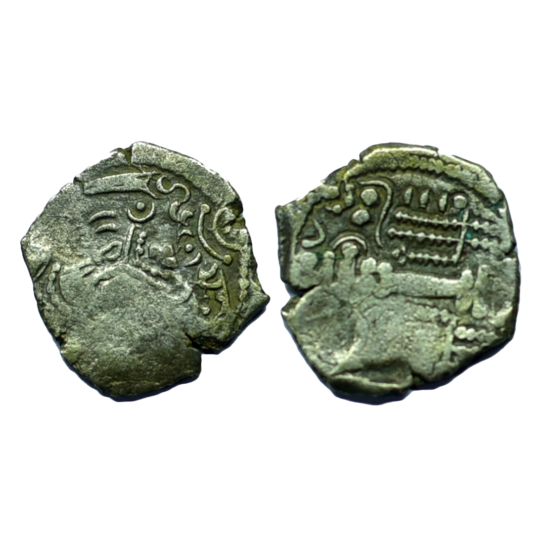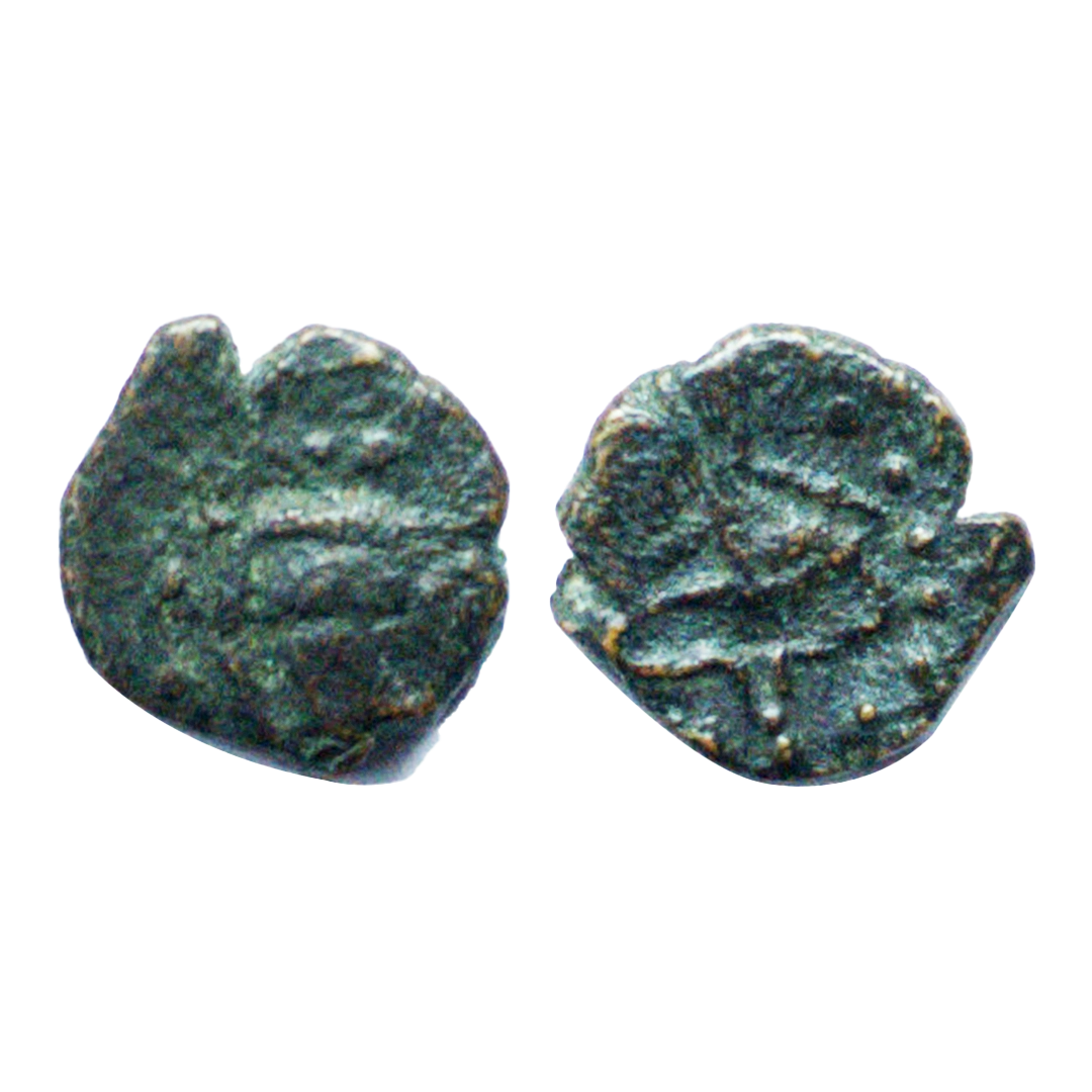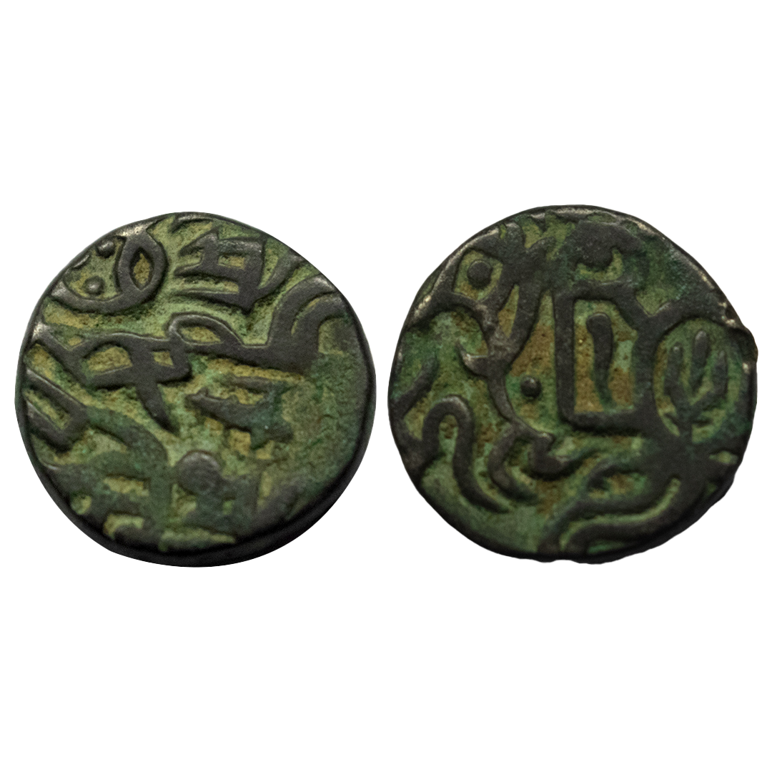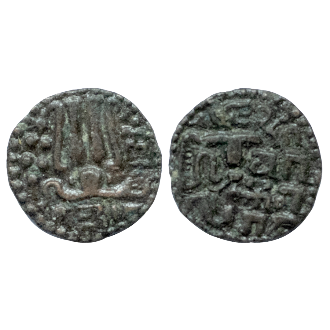 Ancient World, Ceylon Chola, Parakrambahu, Copper Massa, 3.42Grms, Obv: Standing king, lamp at left, globes at right, Rev: King seated right with left arm raised, 4-line Nagari legend below arm ‘Sri Parakram Bahu’. Fine+.