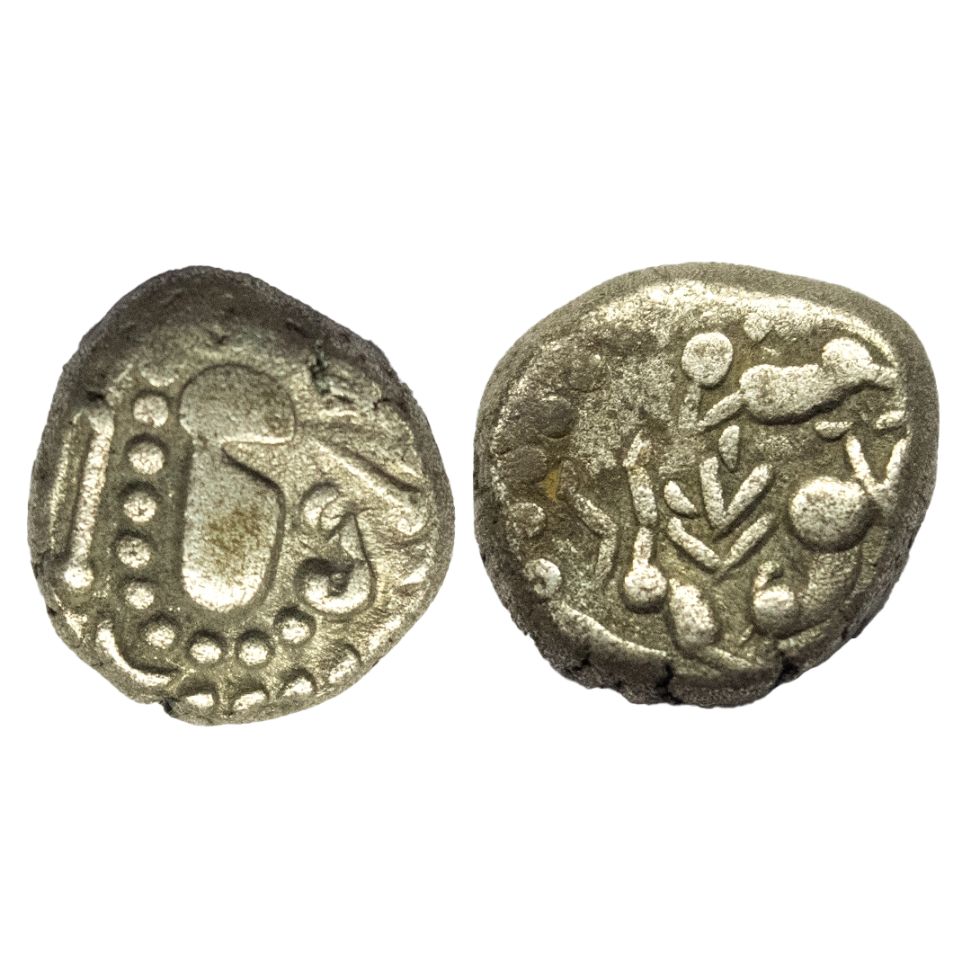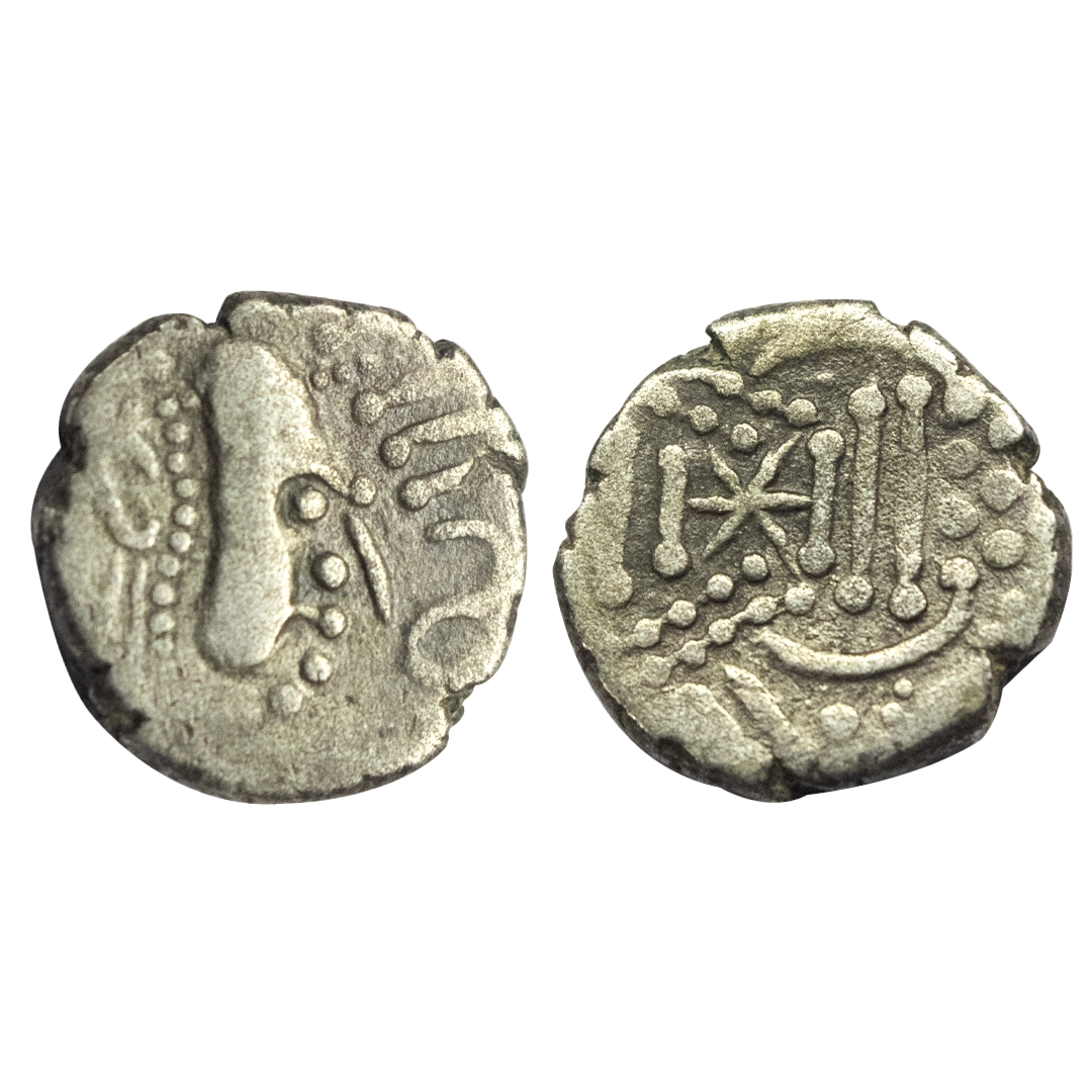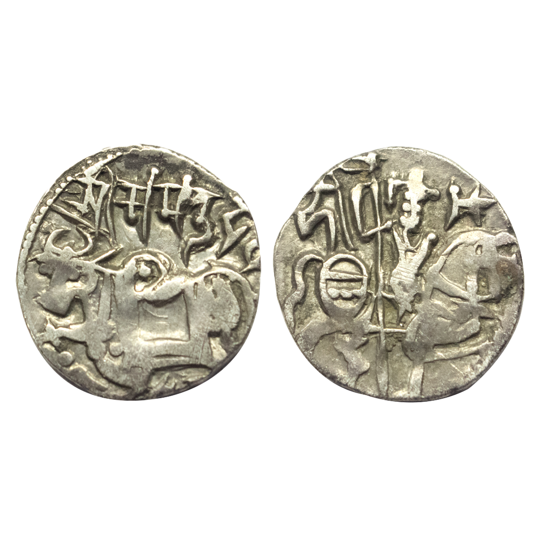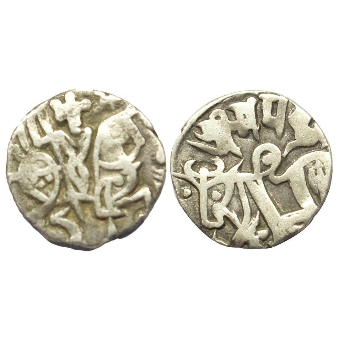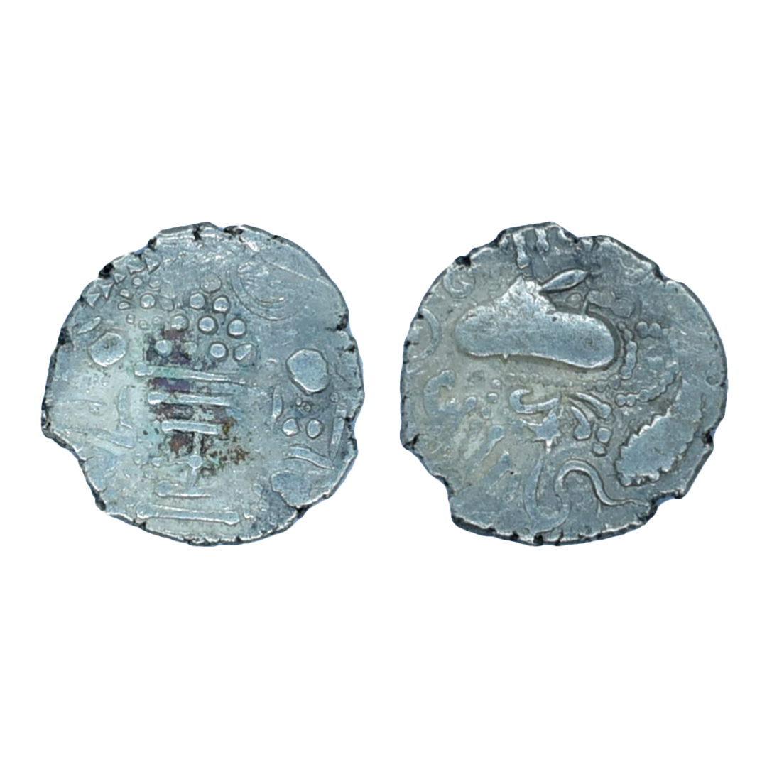 Ancient World, Ceylon Chola, Parakrambahu, Copper Massa, 3.42Grms, Obv: Standing king, lamp at left, globes at right, Rev: King seated right with left arm raised, 4-line Nagari legend below arm ‘Sri Parakram Bahu’. Fine+.