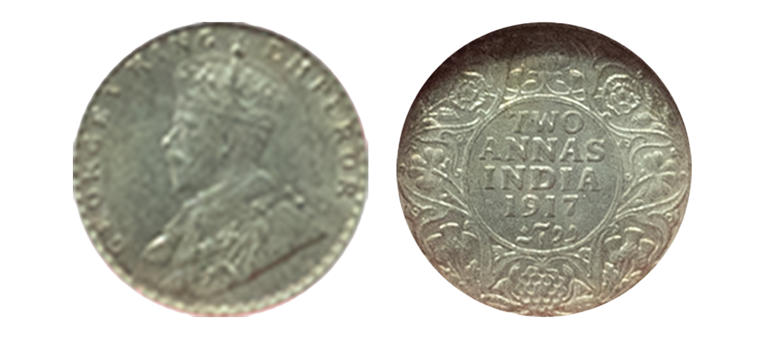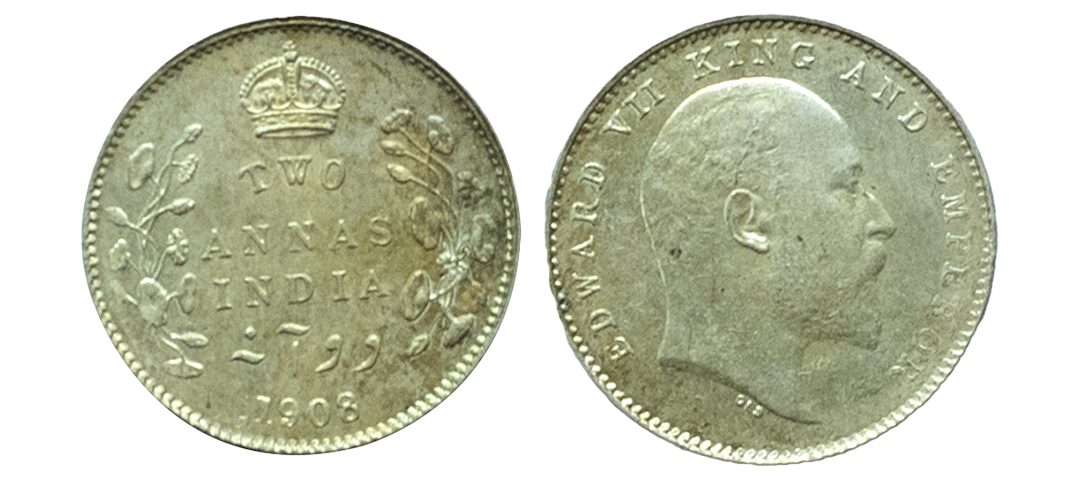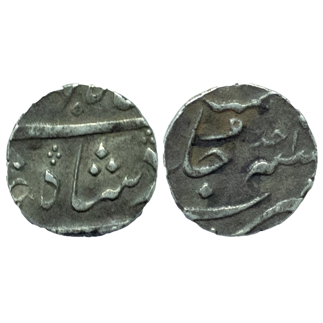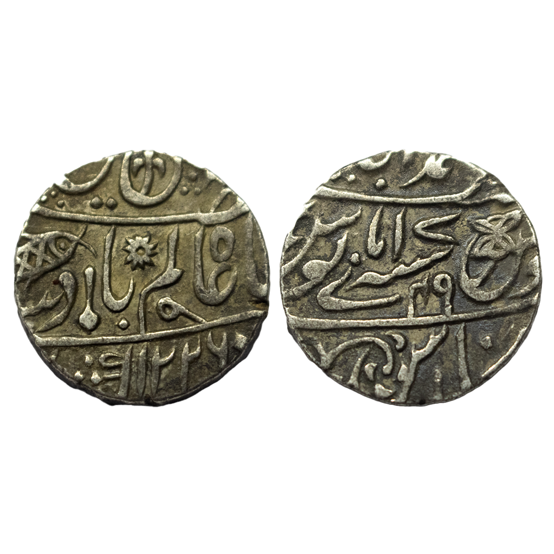 East India Company, Madras Presidency,Silver ¼ Pagoda, 10.27Grms, Obv: Gopuram of a temple with 9 stars on either side, value in English and Persian on buckled garter, Rev: Vishnu surrounded by a dotted border and ribbon with Tamil legend, oblique milling. (KM # 343).