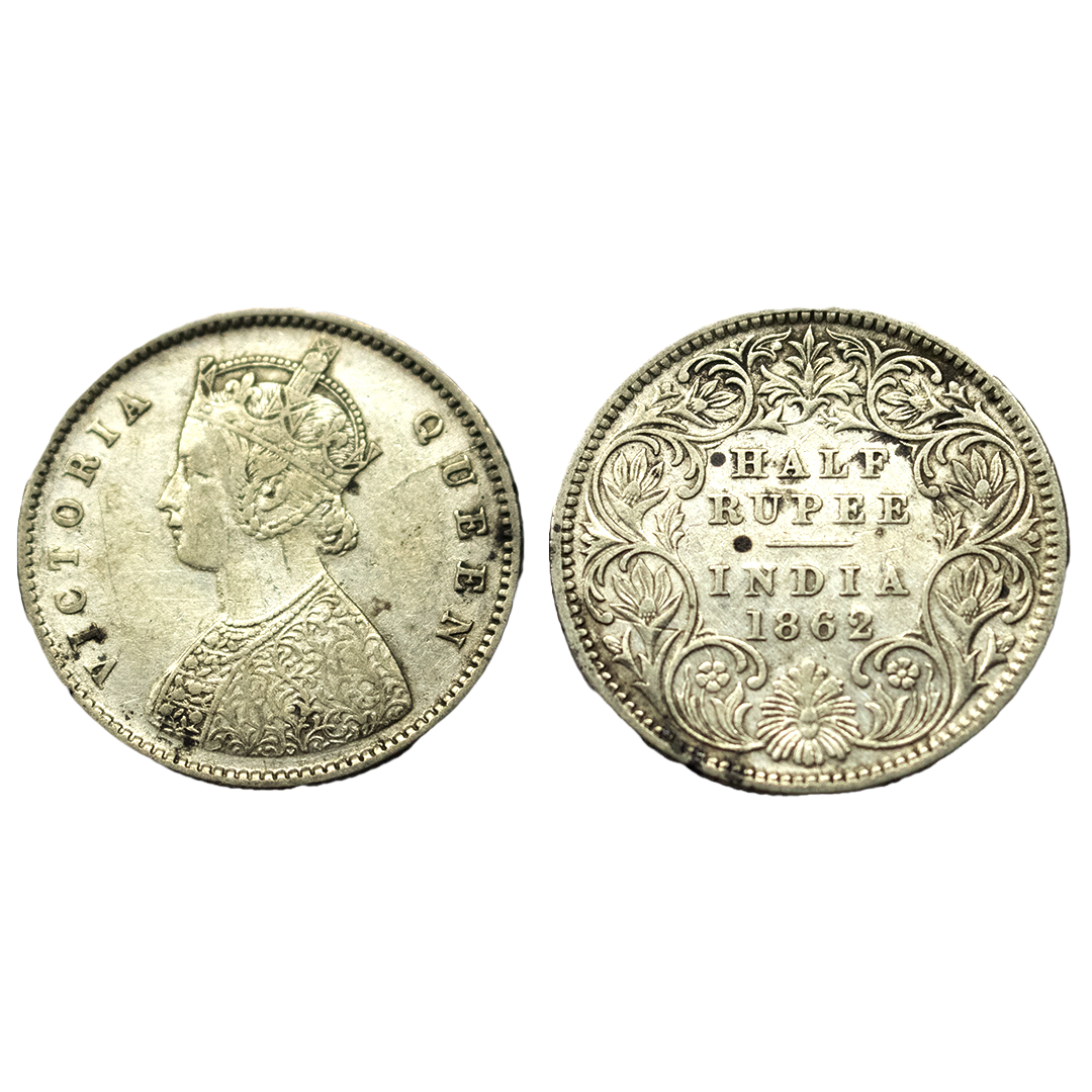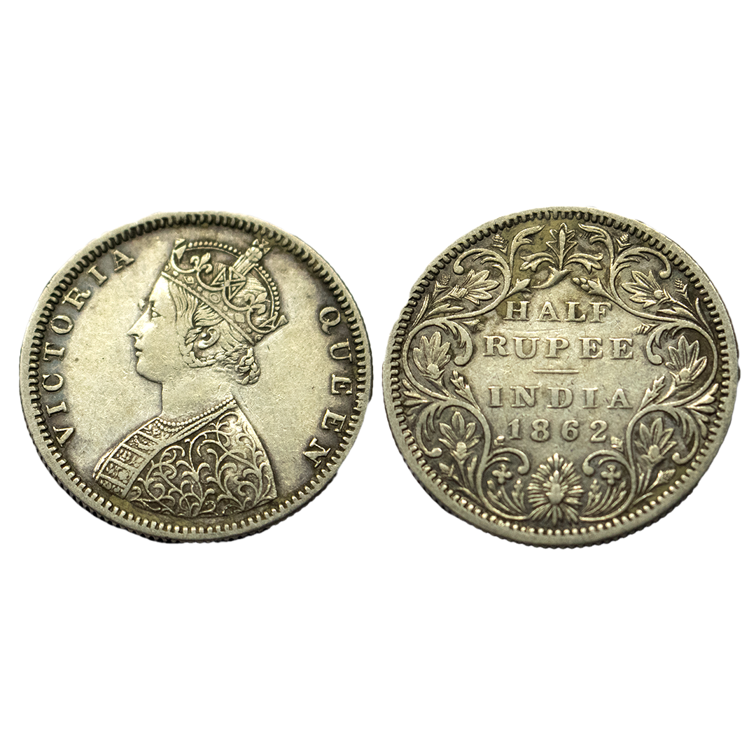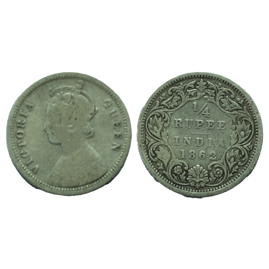 British India, Victoria Queen,1862, Silver ¼ Rupee, Calcutta Mint