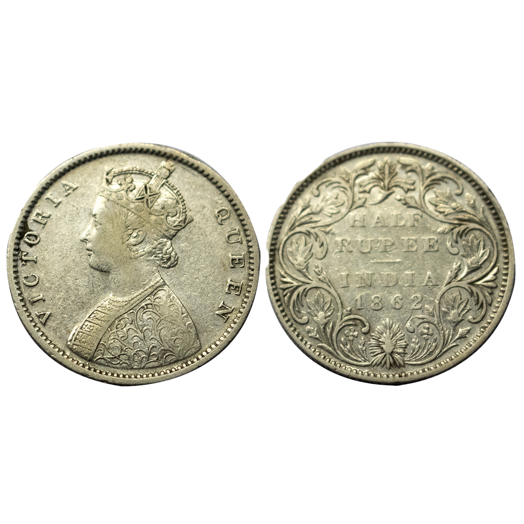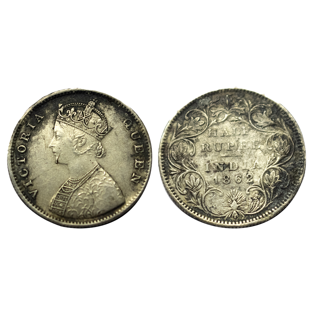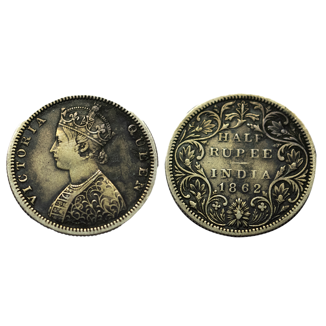 British India, Victoria Queen,1862, Silver ¼ Rupee, Calcutta Mint