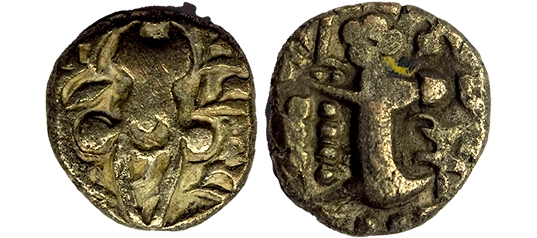 Gupta Empire, Chandragupta II (c. 375-415 AD), ‘Archer’ Type Gold Dinar, Obv: King nimbate, standing left wearing coat, ear-rings, armlets and necklace, head surrounded by halo, holding arrow in the right hand, left hand holding bow at top, 'Chandra' in Brahmi below arm, garuda standard behind and around Brahmi legend worn out, Rev: Goddess Lakshmi seated facing on a lotus, goddess has left hand resting on her knee, holding diadem in her right hand and lotus in left, tamgha to left and Brahmi legend ‘[Sri Vikramah]’ in the right field. (S.Kumar TOTGE # Class III, Var. A). Extremely Fine, Very Rare.