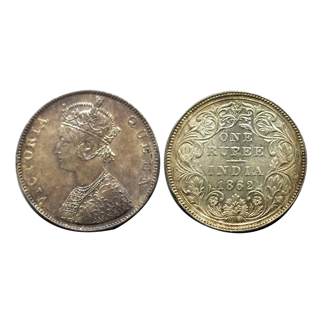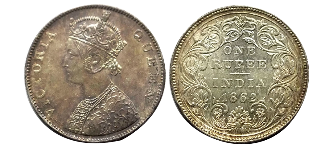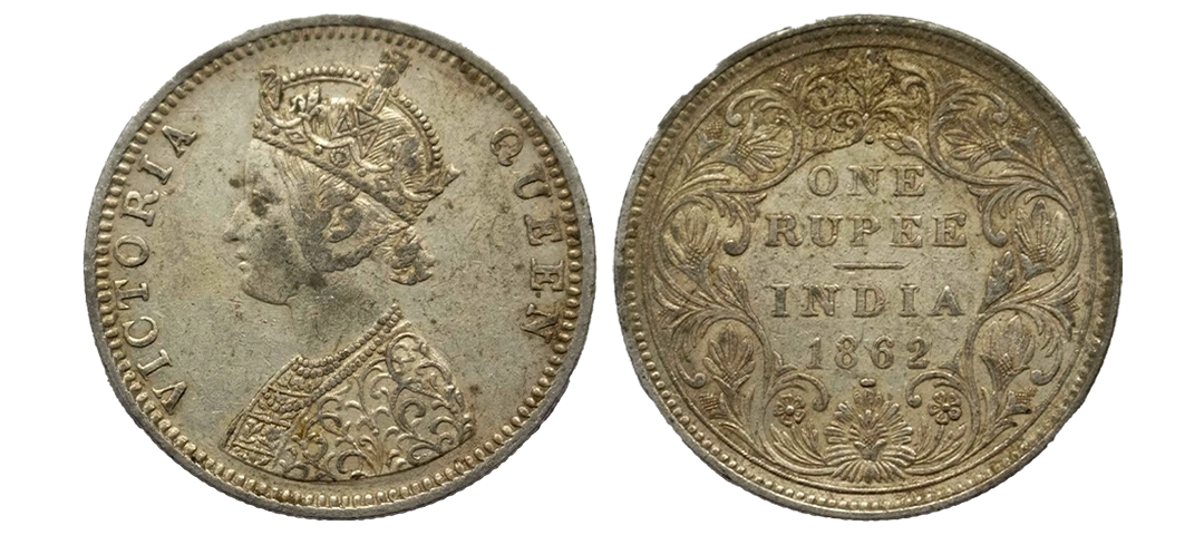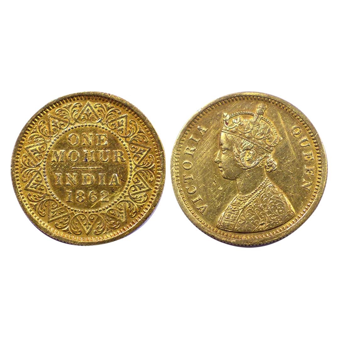 Victoria Queen, Gold Mohur, 1862, single flower in bottom panel of jabot, without V in Jabot (Prid 1), Very Fine+, Rare.
