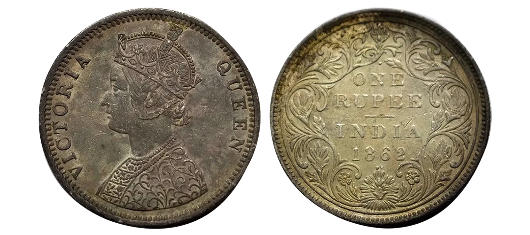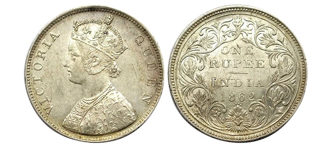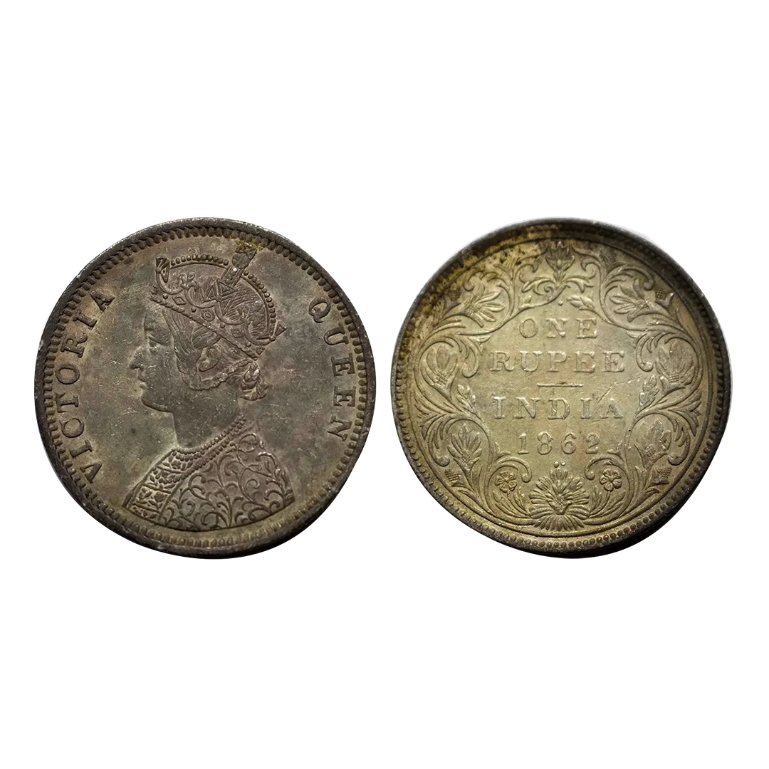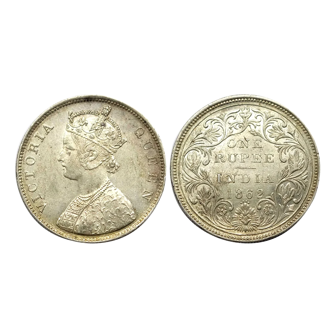 Victoria Queen, Gold Mohur, 1862, single flower in bottom panel of jabot, without V in Jabot (Prid 1), Very Fine+, Rare.