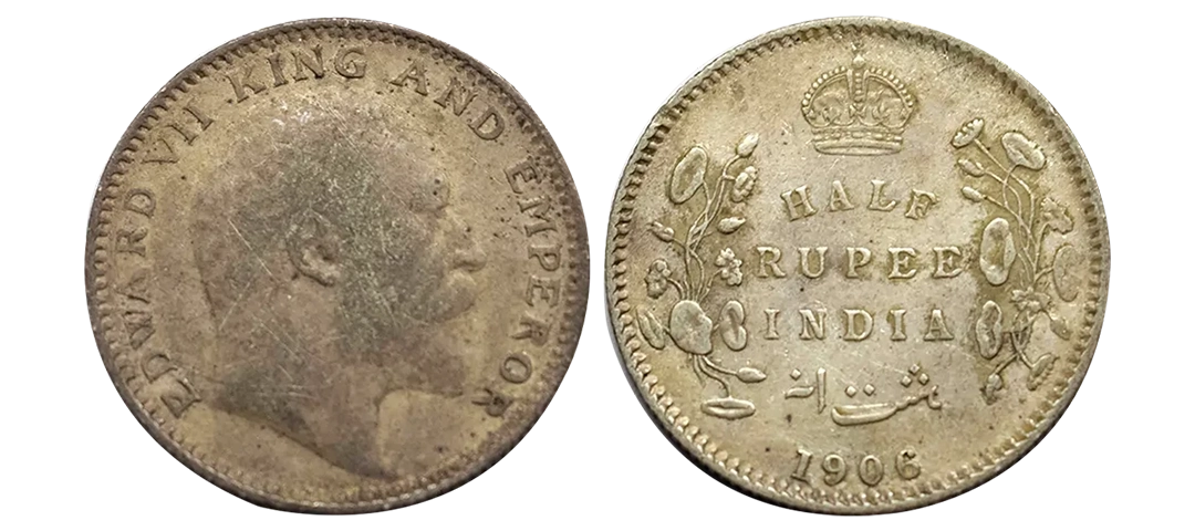 Edward VII, Silver 1/2 Rupee, 1906, Bombay Mint, Uncirculated, Very Scarce.