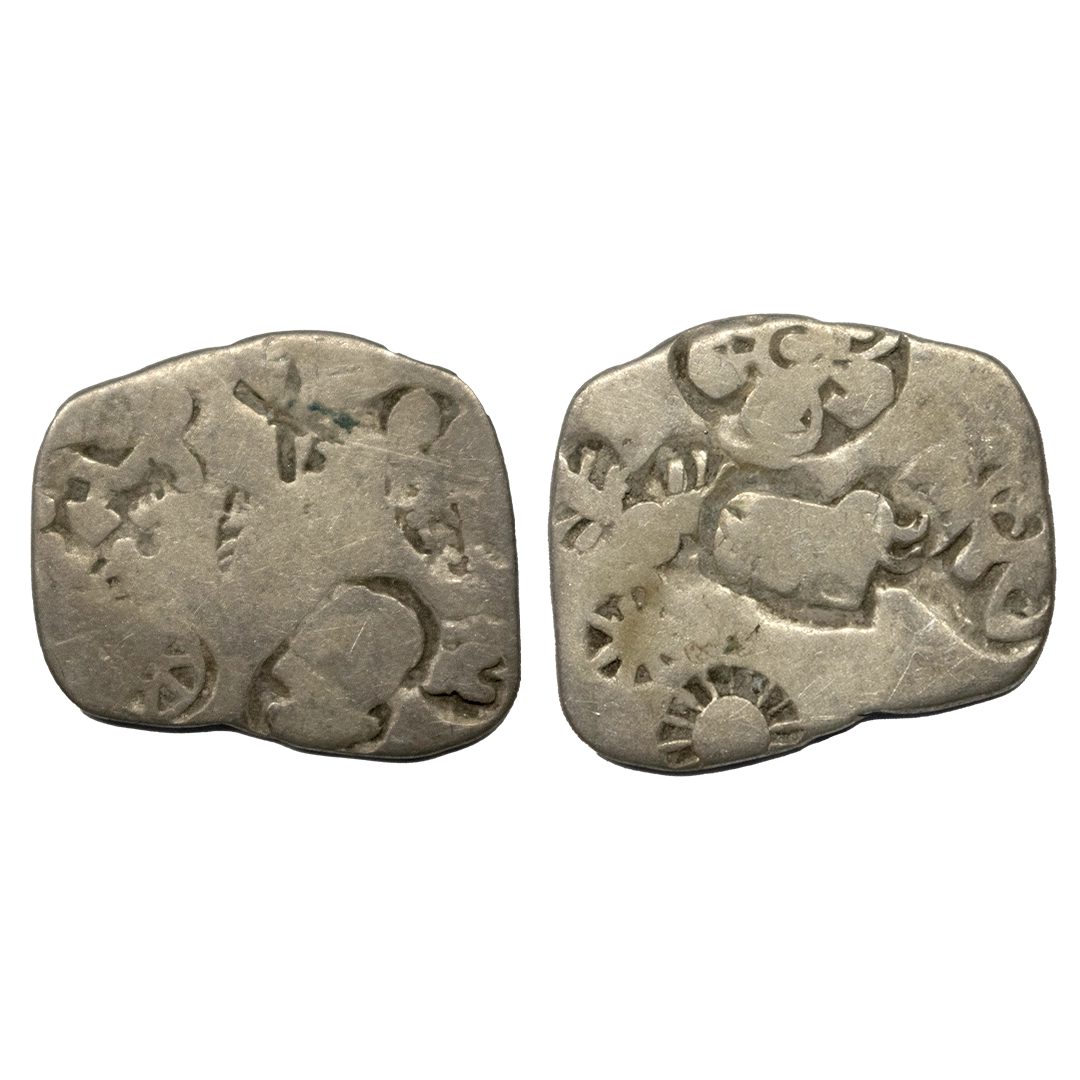 Punch Marked Coinage, Kosala Janapada, (c. 525-465 BC), Silver Karshapana, 3.16 gms,Obv: Four main punches, Rev: Banker’s marks, Ref: Murphy Series III Group D, very fine, very scarce.