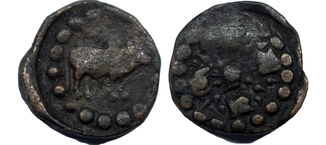 Chola Empire, Raja Raja Chola (985-1014 AD), Copper unit, 3.60 gms, fine, scarce.