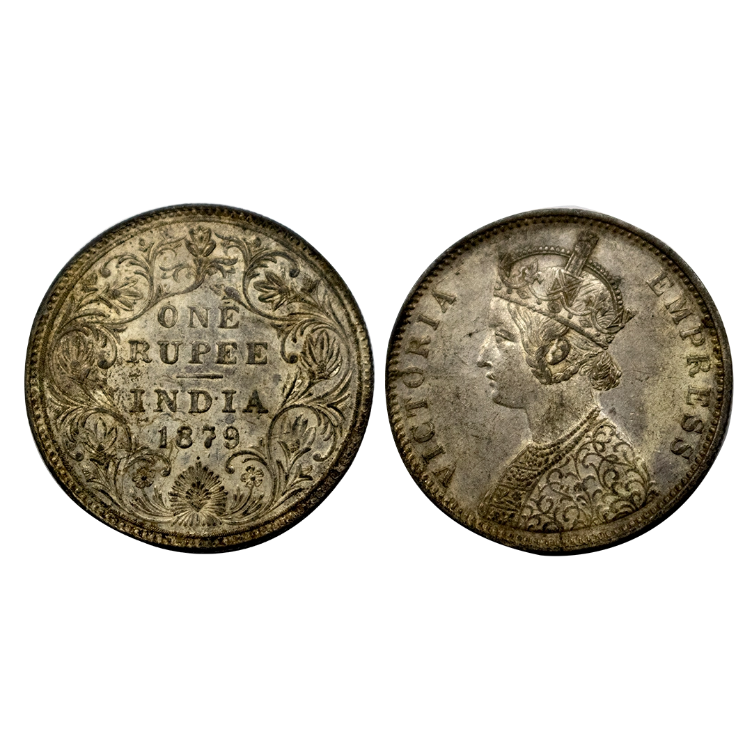 Victoria, Silver Rupee, 1879, Bombay Mint, Obverse A3, reverse II(iii), dot, toned, Aunc,Gk 458, Rare.