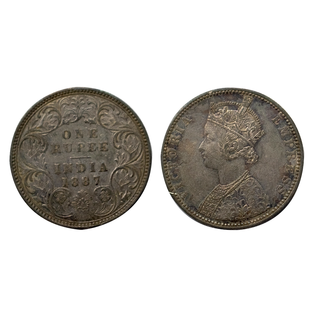 Victoria, Silver Rupee, 1887, Bombay Mint, Obverse C2, reverse I(ii), reverse B incuse, toned, Aunc, GK 546, rare.