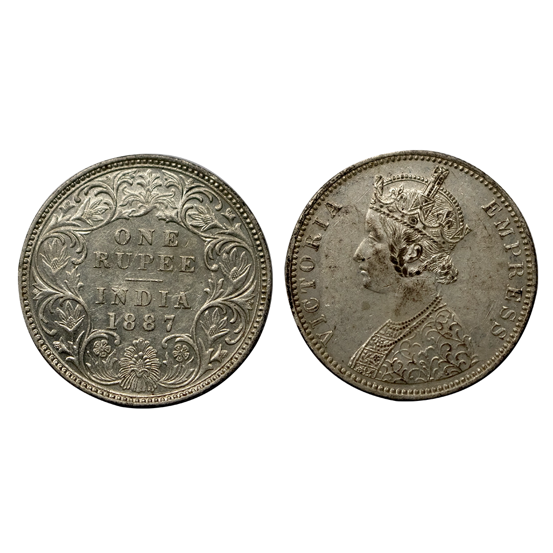 Victoria, Silver Rupee, 1887, Calcutta Mint, Obverse C2, reverse I(ii), reverse B incuse, Aunc, GK 546, rare.