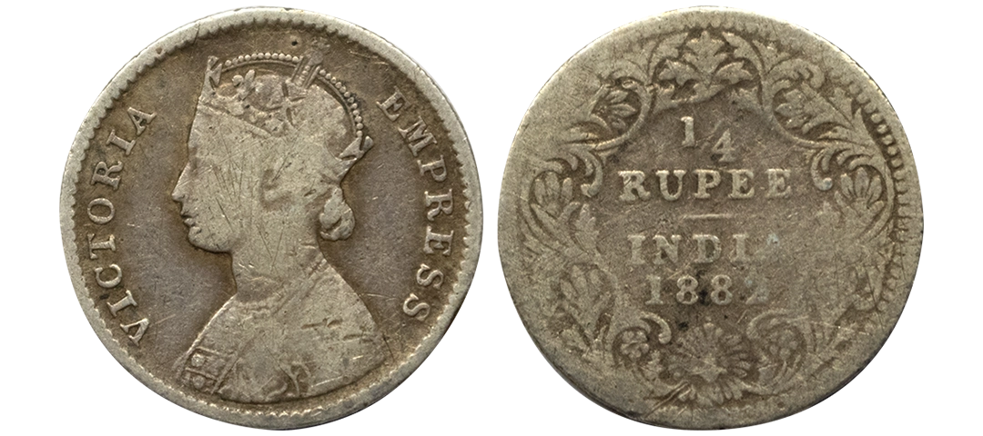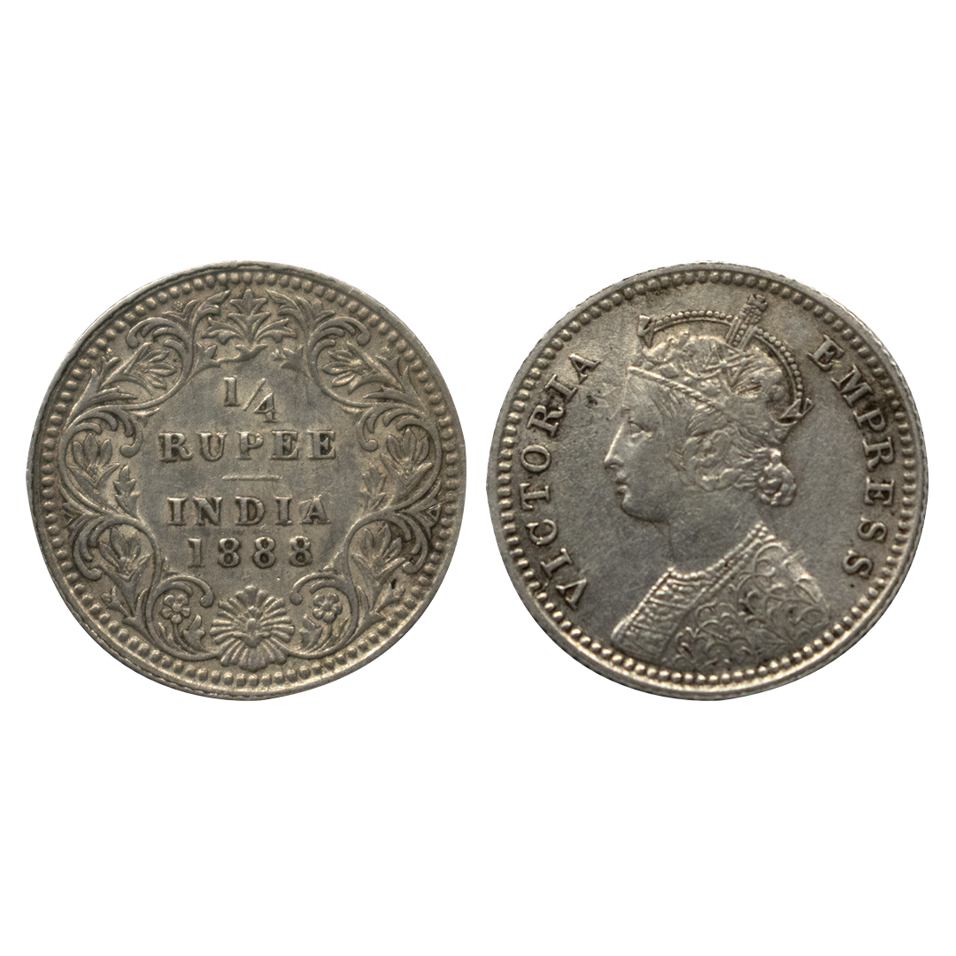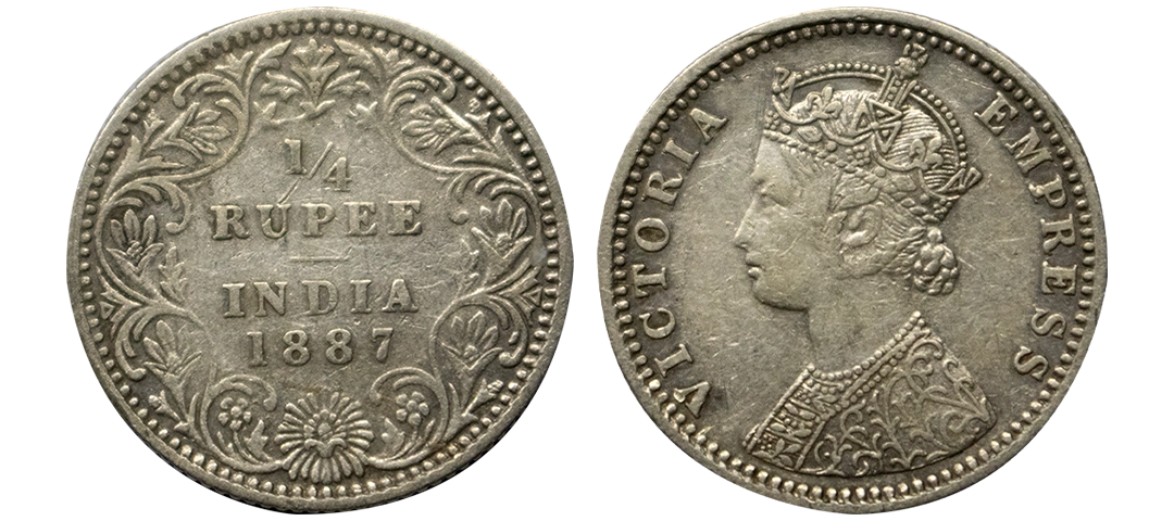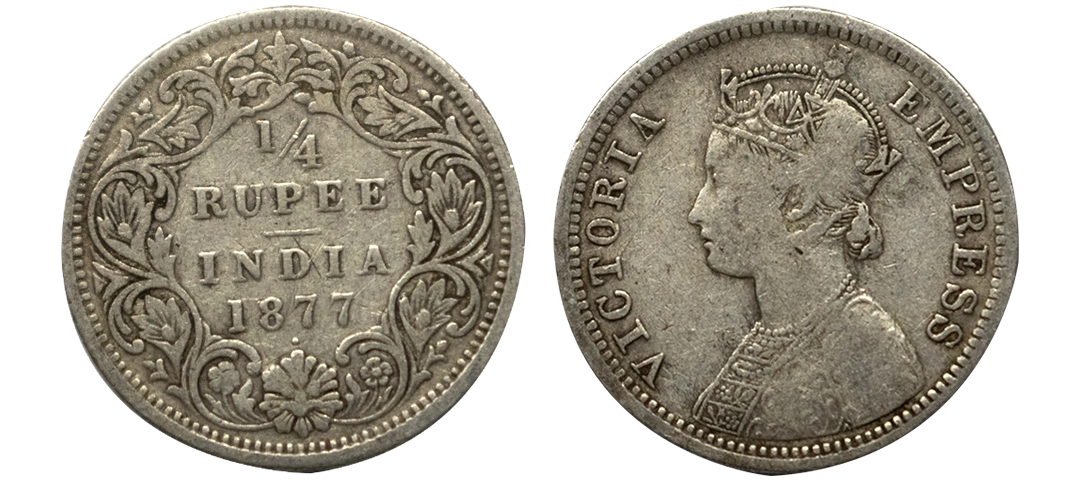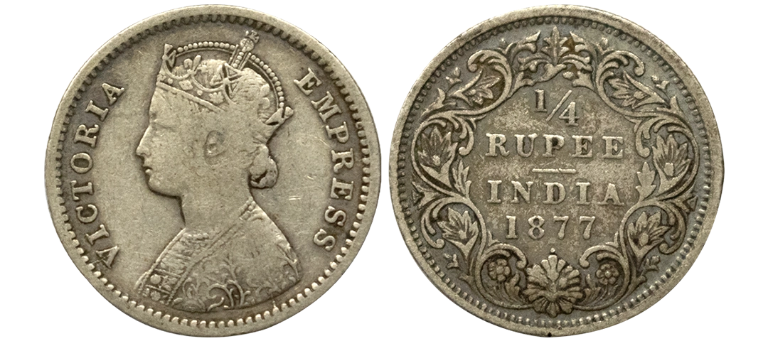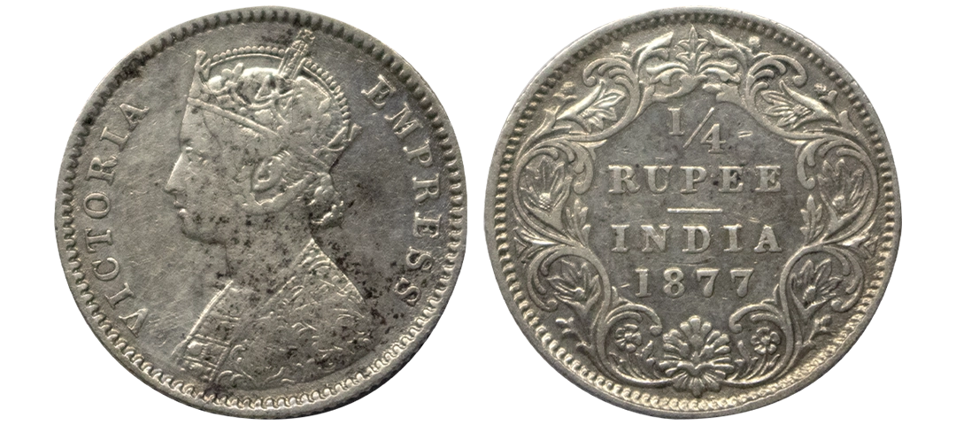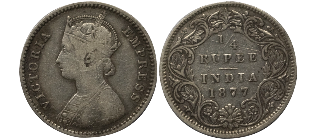 Victoria Empress, Silver ¼ Rupees, 1877, Bombay Mint, very fine, very scarce.