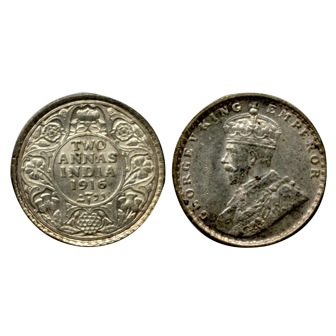 George V, Silver 2 Annas, 1916, Calcutta Mint, uncirculated.