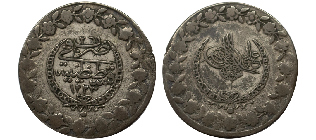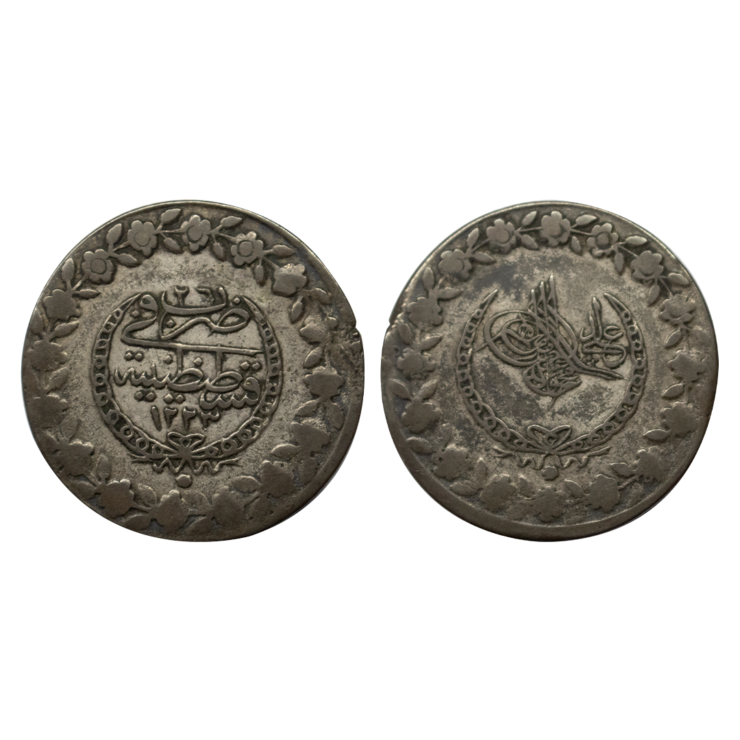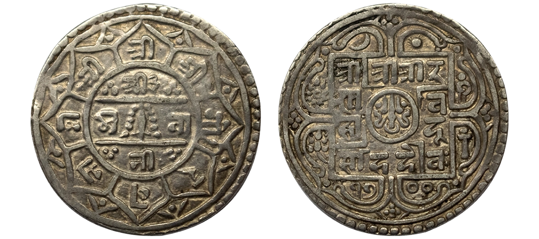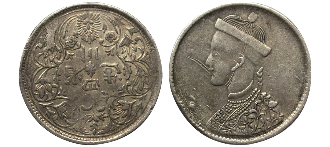 Tibet (1911-1916 AD), Silver Rupee, 11.17 gms, ND, Obv: portrait bust of king with collar, Rev: Four Chinese ideograms read top to bottom, right to left with vertical rosette in centre, all surrounded by floral wreath, KM # Y3.2, very fine, rare.