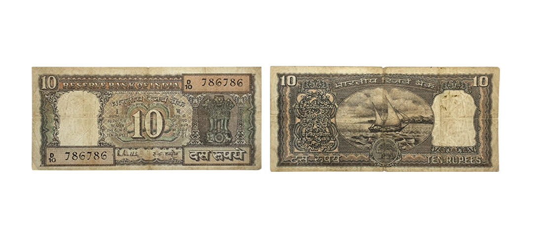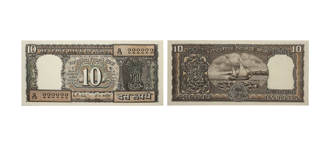 Republic India, 10 Rupees, Black Boat series, R. N. Malhotra, Fancy Number, D10 186186, C inset, fine, rare.